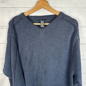 Kavu Mens size Large Cotton Long Sleeve V Neck Knit Sweater Blue