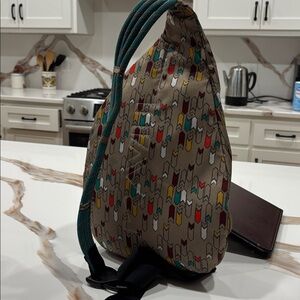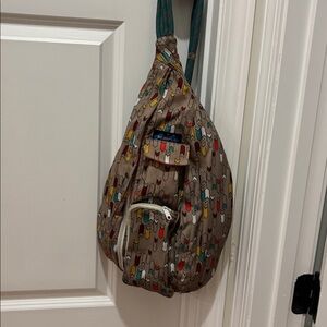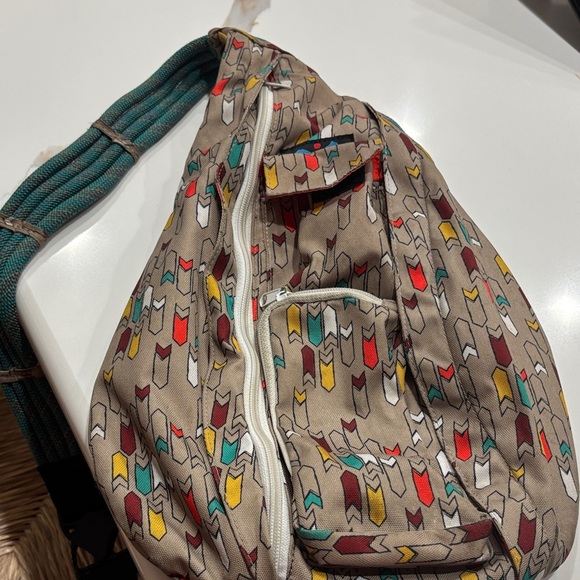 Chic Kavu backpack with arrow design. Features vibrant colors. Ideal for everyday use.