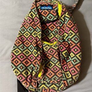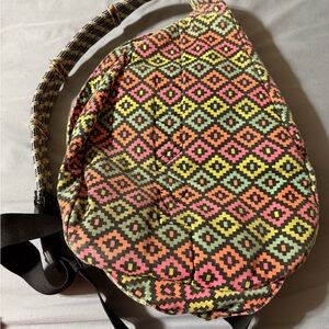Vibrant geometric pattern. Features multiple colors. Stylish and functional.