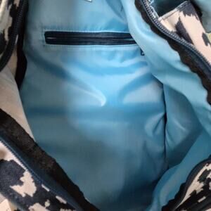 Preowned: Cool, "Blue Blot" cotton canvas crossbody rope sling bag with an allover fun design / lightweight / two vertical zip compartments by Kavu.