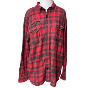 Kavu Red Black Buffalo Plaid Flannel Shirt Large Long Sleeve Button Down Top