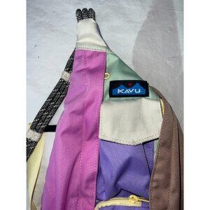 Kavu Rope Sling Bag Color Block Pink Purple 5 Pocket Snowcone Hike Camp