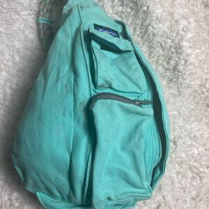 Kavu Rope Slingback crossbody canvas blue Bag.two front pockets two sides zipper compartment padded back. Pre owned in good used condition some stains marks in some parts of the bag the bag is clean was not able to remove the stains see all pictures any questions please messageM2