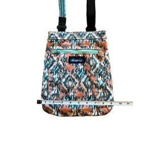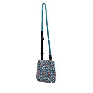 Kavu Shoulder crossbody purse. Teal rope handle. multi color ikat print!gorgeous