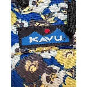 It features Kavu's signature rope strap, two vertical zip compartments, and a padded back with a zip pocket. The colors are vibrant and fun, making it a great way to add personality to any outfit. This gently used Kavu sling bag is in excellent condition and ready for new adventures!