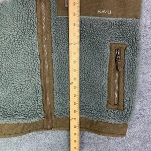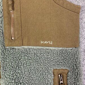 Kavu Vest Mens Sz Medium Gray Brown Deep Pile Fleevce Canvas Zip Up Jacket