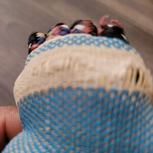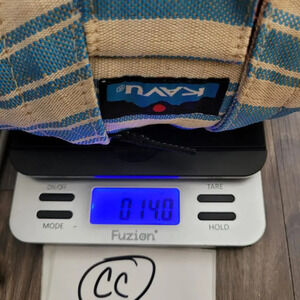 Kavu Women Interwoven Rope Bag Sling Pack Prism Stripe Blue and White Fanny Zip Pocket.