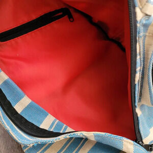 Kavu Women Interwoven Rope Bag Sling Pack Prism Stripe Blue White Zip Pocket