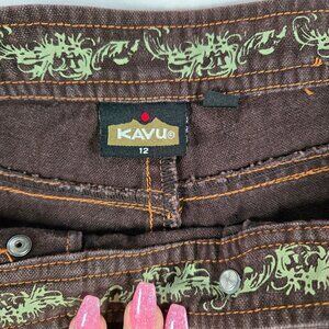 Kavu Womens Brown Casual Cotton Shorts Size 12 Embroidered Detail