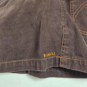 Crafted for durability and style, these brown Kavu shorts feature functional pockets, vibrant stitching, and a relaxed fit, ideal for casual wear.