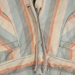 Fabric: 4.5oz 100% cotton yarn dye novelty weave - light wash.