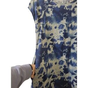 The Kavu XS Somerton Dress is a free-flowing knee-length dress in a blue and light blue tie-dye viscose fabric. It features a round neck, cap sleeves, and a pullover closure for easy wear. This dress is designed for outdoor and casual wear, making it perfect for travel or everyday use. It has a side slit for added style and comfort, along with convenient pockets. Lightweight and machine washable, this dress is ideal for summer and spring seasons. Excellent condition!