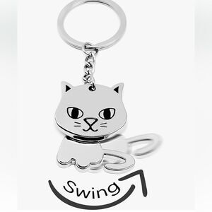 Adorable silver cat keychain with a rotating body charm — perfect for cat lovers, kawaii accessory fans, or anyone who loves cute bag charms. Lightweight, durable, and brand new in packaging.