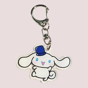Bring a touch of cuteness and style to your accessories with this delightful Cinnamoroll keychain! This charming design features the beloved Sanrio character Cinnamoroll wearing an adorable blue top hat, giving him a fun and playful look. The keychain is crafted from durable acrylic and includes a sturdy metal clasp, making it easy to attach to keys, bags, or zippers. Cinnamoroll’s cute expression and signature big ears make this keychain a must-have for fans and collectors of Kawaii and Sanrio merchandise. Perfect for adding a whimsical flair to your everyday items!