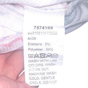 This adorable shirt features an all-over, multi-colored print of Hello Kitty's sweet face in various poses, interspersed with the Japanese Katakana for "Hello Kitty" (\text{ハローキティ}) in bright hues. The crisp white fabric is subtly ribbed, adding a fun texture and a cozy feel, while the overall sheer quality gives it a light, breezy look perfect for layering or warmer days.