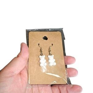 Kawaii White Gummy Bear Dangle Earrings