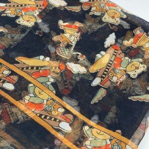 Details: Transparent square handkerchief in black with cutesy kawaii print.