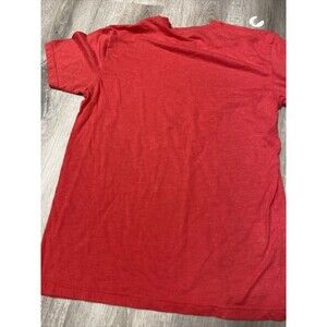 Nice quality, super soft, heathered red T-shirt. The graphic says the bounce shot by Kawhi Leonard with three different poses. Underneath it says NBPA. Mens size medium, but seems to run a little small, so please check the dimensions carefully. It will not shrink because its only 60% cotton. The rest is polyester. See photos for complete details, I do not see any flaws on this T-shirt.