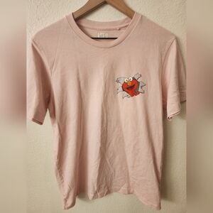 Kaws x Elmo Sesame Street Uniglo Single Stitch Pink Shirt Sz Small