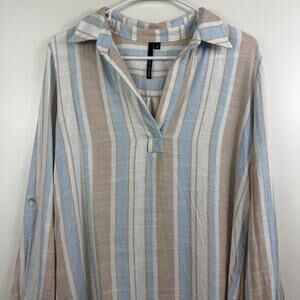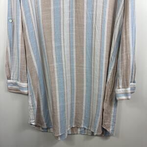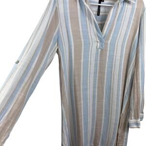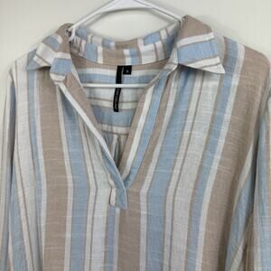 Kay Celine Striped Linen Blend Popover Shirt Dress Small Coastal Beach Preppy
