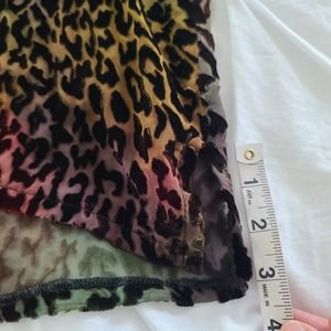 Semi-sheer rainbow ombre fabric with velour textured leopard animal print.
