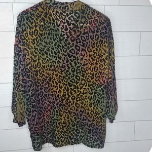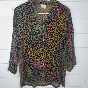 Kay Chapman Blouse Leopard Print Ombre Rainbow Burnout Velvet Small Art to Wear
