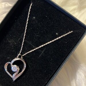 Beautiful Heart necklace, 18 inch, with 1/10 Total Diamond weight in sterling silver. Lovely necklace. From Kay Jewelers.