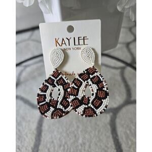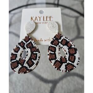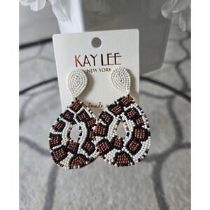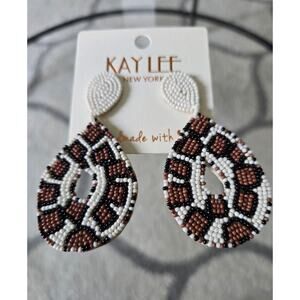 Brand new woth tags, Kay Lee Animal Like Pattern Earrings New. Beautiful White, Brown & Black design, super light weight, measure about 3 inches top to bottom