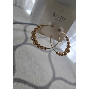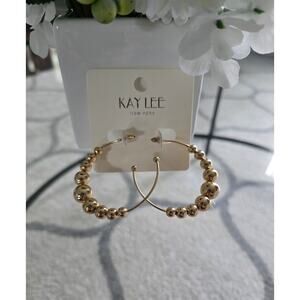 Brand new with tags, Kay Lee Gold Beaded Hoop Earrings New. Gold hoops with beaded detail measures about 3 inches top to bottom