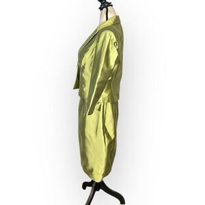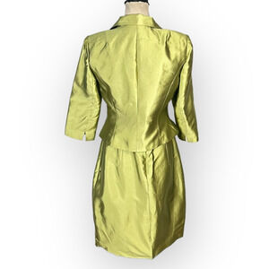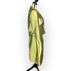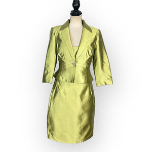 Kay Unger 2 Piece Set Women's 10/12 Green Silk Blend Satin Mini Dress Blazer