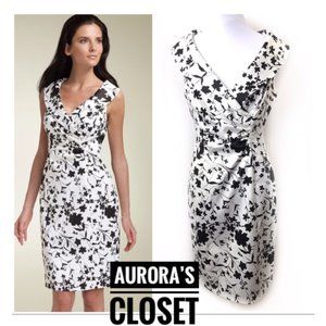 Kay Unger 6 White Floral Sheath Dress Portrait Collar Satin Black