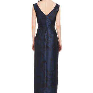 Kay Unger Amal Walk Thru Jumpsuit – Metallic Floral Jacquard Elegance