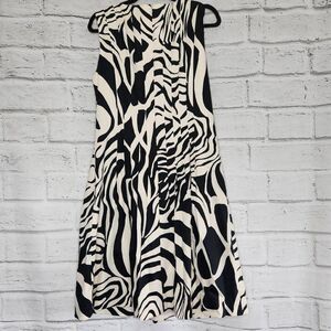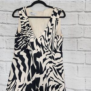Kay Unger Animal Print Sleeveless V-Neck Mini Dress Black & Cream Size 14