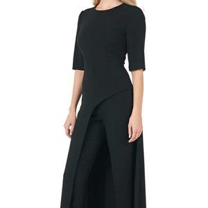 This elegant garment looks like a glamorous gown from the back and like a modern jumpsuit from the front—either way, it's absolutely captivating.