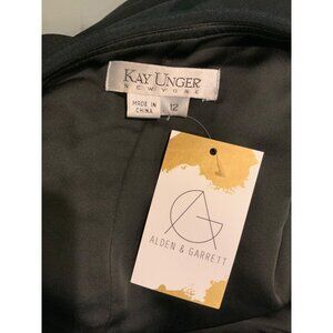 Kay Unger Black One Shoulder Silk Sheath Dress W/ Oversized Bow, Size 12