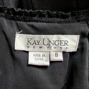 Kay Unger Black Ruffled Neckline Cocktail Dress Sleeveless Classic Lined