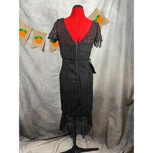 Kay Unger Black Tatum Floral Lace Sheath Midi Dress Size 0 Cocktail $248