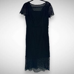 Kay Unger Black Tatum Floral Lace Sheath Midi Dress Size 10 Cocktail Effortless