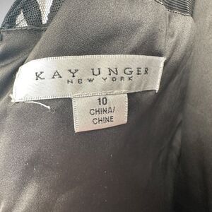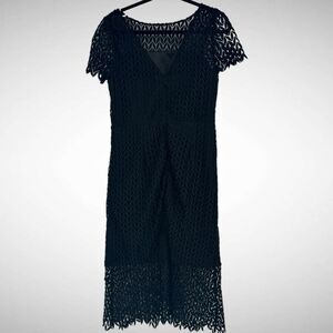 For sale is this Kay Unger Black Tatum Floral Lace Sheath Midi Dress Size 10 Cocktail Effortless. This dress is in good condition!