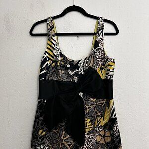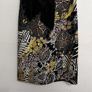 Kay Unger Black Yellow Bow Detail Brocade Silk Cocktail Party Dress Size 8
