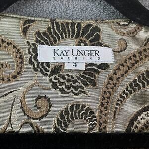Kay Unger Blazer Jacket Womens Size 4 Green Metallic Paisley Wool Blend Cropped Art Old Money