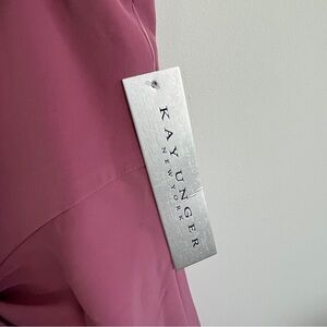 Chic soft rose gown by Kay Unger. Very comfortable and elegant. Sleeveless with elegant draping. Ideal for weddings. I bought for a wedding But gained weight and couldn’t wear it. Never been worn or altered.