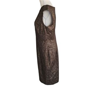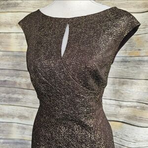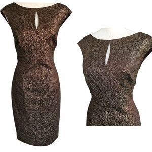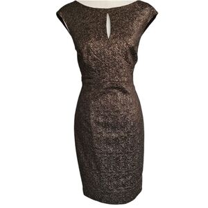 Kay Unger Brown & Gold Metallic Sheath Dress