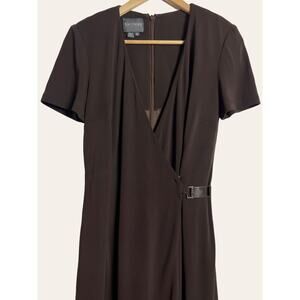 Kay Unger Chocolate Brown Short Sleeve V-Neck Wrap Dress Size 10