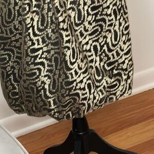 The bust has delicate pleats in the front. The waist is accentuated by a black band. From Newman Marcus.
