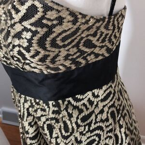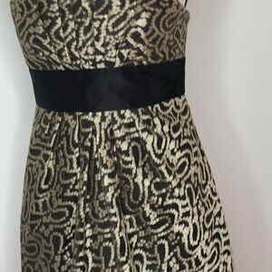 Kay Unger gold and black strapless dress.