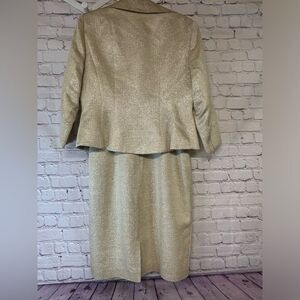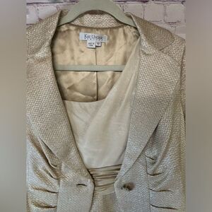 Kay Unger Cream Gold Tweed Silk Bodice Dress with Matching Silk Lined Jacket 10