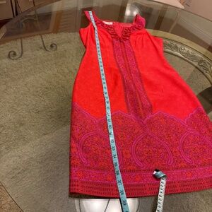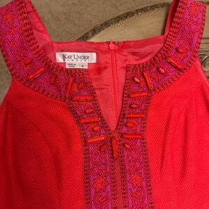 Kay Unger Dress Womens 8 Orange Sleeveless Sheath Embellished Textured Party