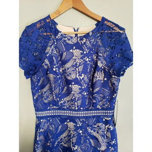 Kay Unger Dress Women's Size 8 Blue Tatum Floral Lace Midi Lined Event NWT