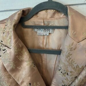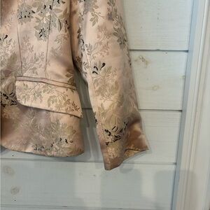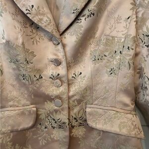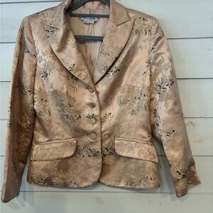 Kay Unger New York Floral button down blazer . Size 8, great condition! Elevate your style with this elegant floral patterned tan jacket. Perfect for any occasion, this jacket offers a sophisticated look with its intricate design.